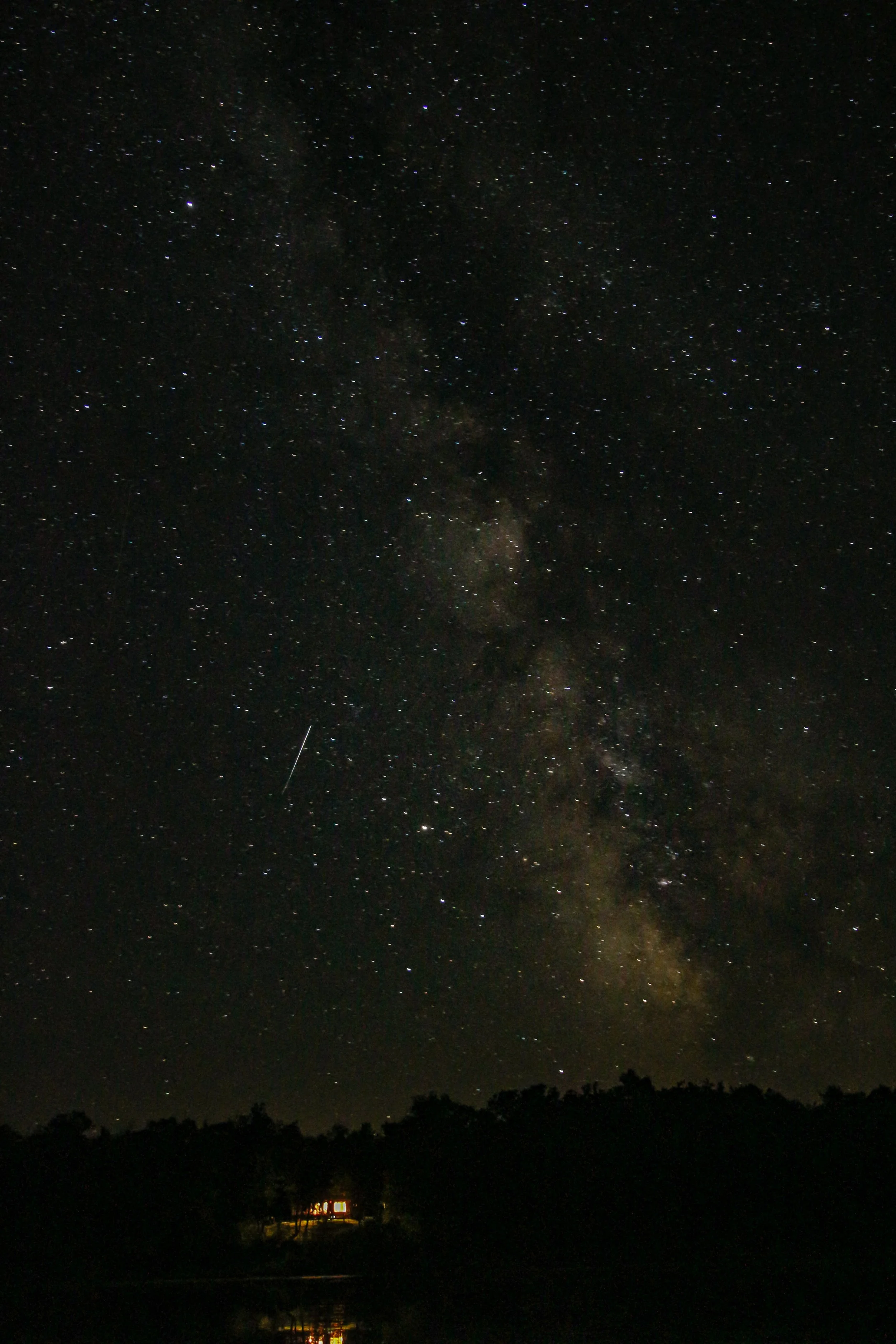 I am not a night owl and staying up late is hit or miss. I was able to stay up for the skies to get dark and the Milky Way to appear. I walked down to the lake, where I have the best view of the skies and set up the camera on the tripod. I have gotten better as the years have gone on, but it takes a fair amount of time for me to figure out the right settings and position of the camera on the tripod to capture the night sky. When I got down to the lake, the skies were miraculous clear. The night sky was breathtaking. I forget how much is up there.